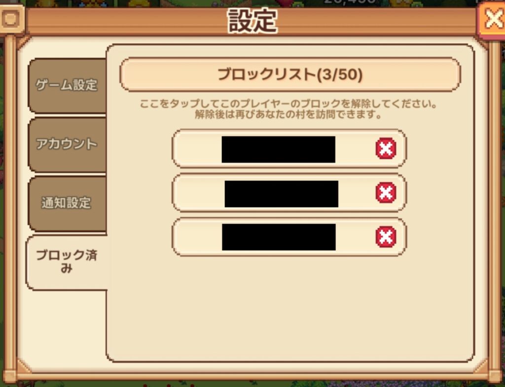 設定→ブロック済みからブロックに追加したユーザーの確認と解除が出来る。